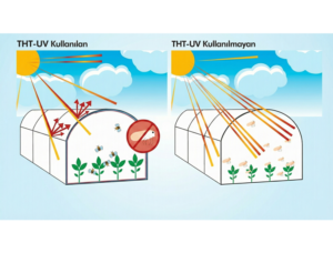 - Kullanılan THT UV, düşük dalga boylu güneş ışınlarına karşı polietilenin polimer zincirinin oksidasyonunu önleyerek bu ışınların zararlı etkilerden sera örtüsünü korur ve kullanım ömrünü uzatır.
